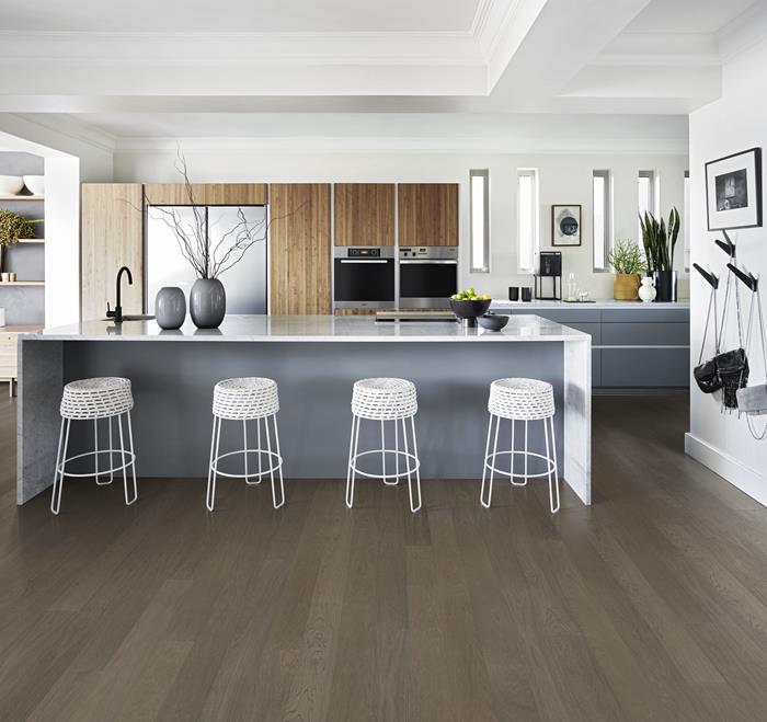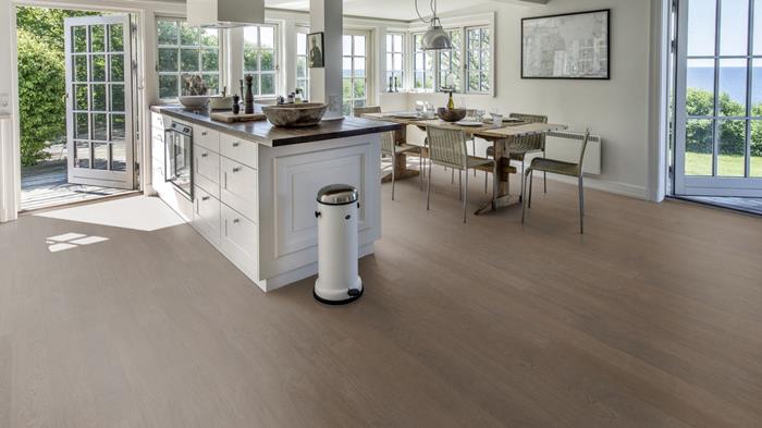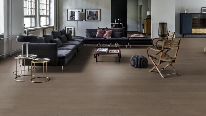 A faded black with the warmth of the oak shining through. Faded black wide is a single-strip stained oak floor from the Life Collection. A calm wood collection with few knots and an authentic look and feel. Four-sided microbevelling at the edges ensures a classic full plank look. The innovative matt lacquer finish eliminates glare while protecting the wood from daily wear.