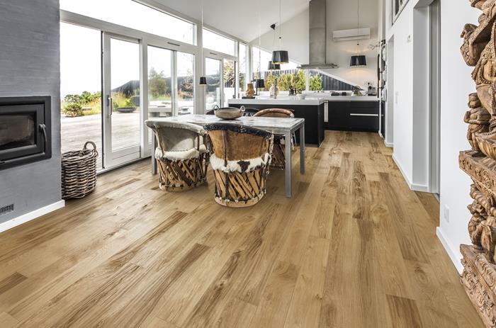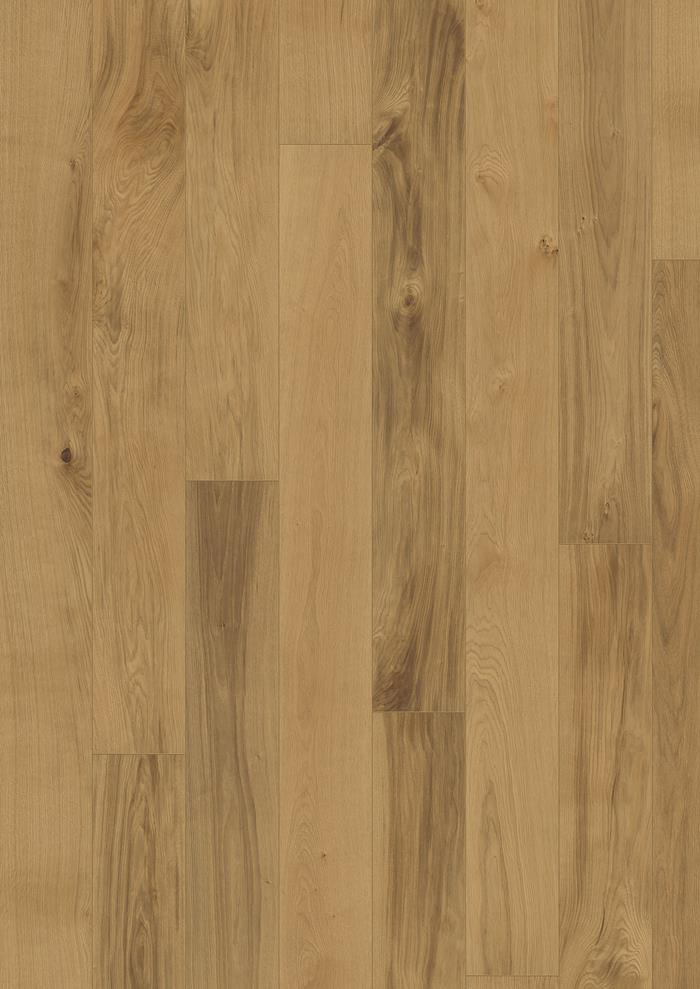 This single-strip oak floor from the European Naturals Collection features hayseed brown hues highlighted with darker, natural grain design. Four-sided micro-bevelling at the edges ensures a classic, full plank look and feel. Each board is carefully brushed to bring out the character of the grain and highlight the natural texture of the wood.