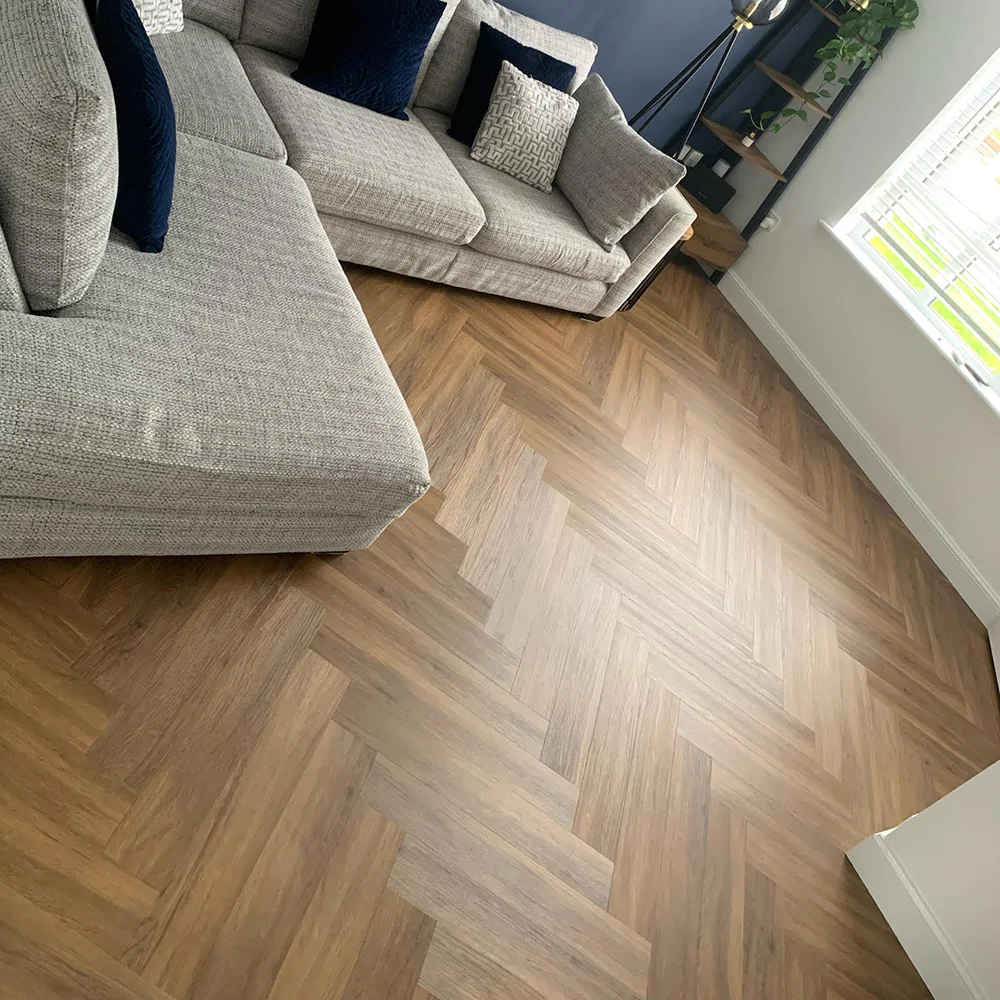 Our Luxury Tiles Dry Back collection is available in a wide selection of wood and stone designs. The wood designs range from traditional to elegant herringbone and rustic, while the stone designs span from classic stone to concrete. It also includes exciting patterns. The Dry Back floors, with a 0.7 mm wear layer, are based on virgin vinyl and constructed in five different layers, topped by a ceramic coating. The result is extremely resilient and strong floors resistant to both scratching and water, which means that these floors are suitable even for spaces exposed to heavy traffic. Just like all our other Luxury Tiles floors, they are phthalate-free.